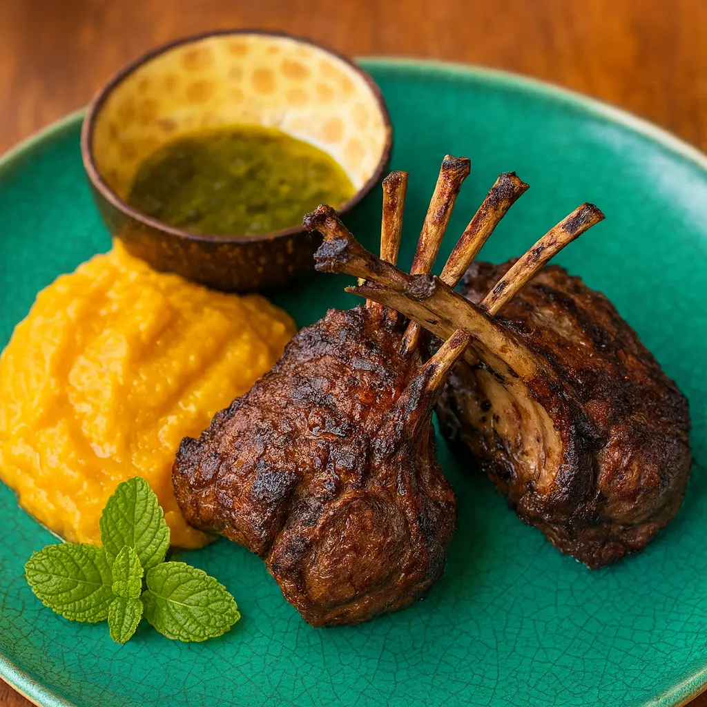 Cordeiro ao molho de hortelã e mousseline de cabotiá